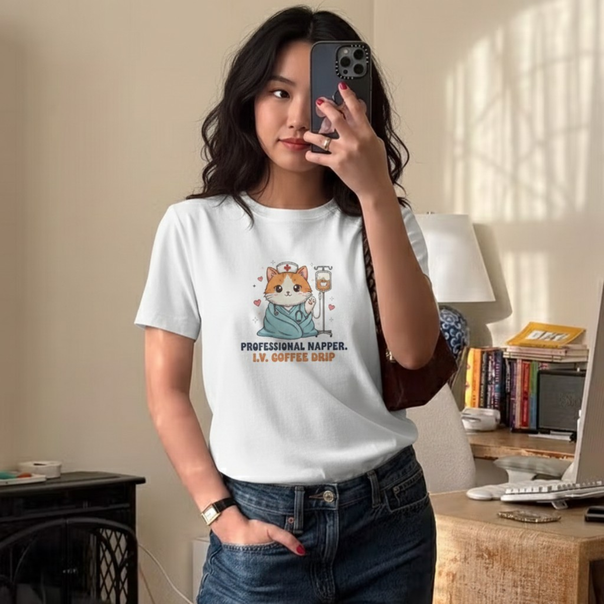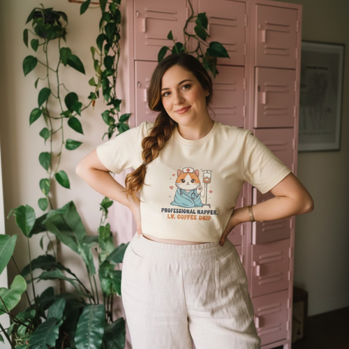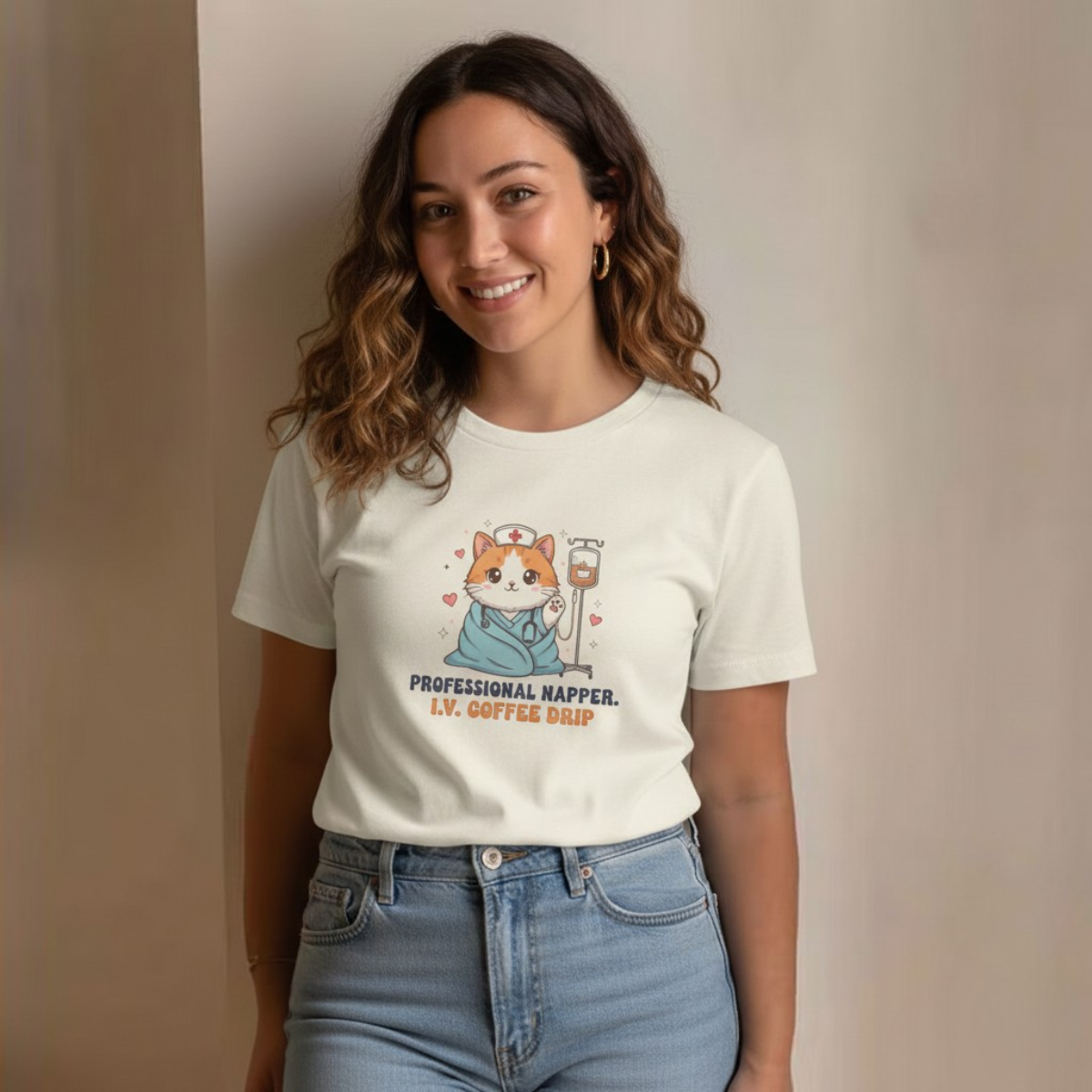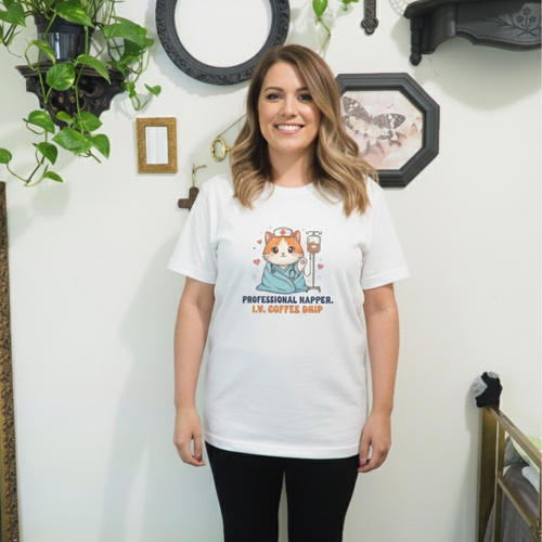 This tee is the ultimate fix for long shifts, combining humor and comfort that boosts your spirits!